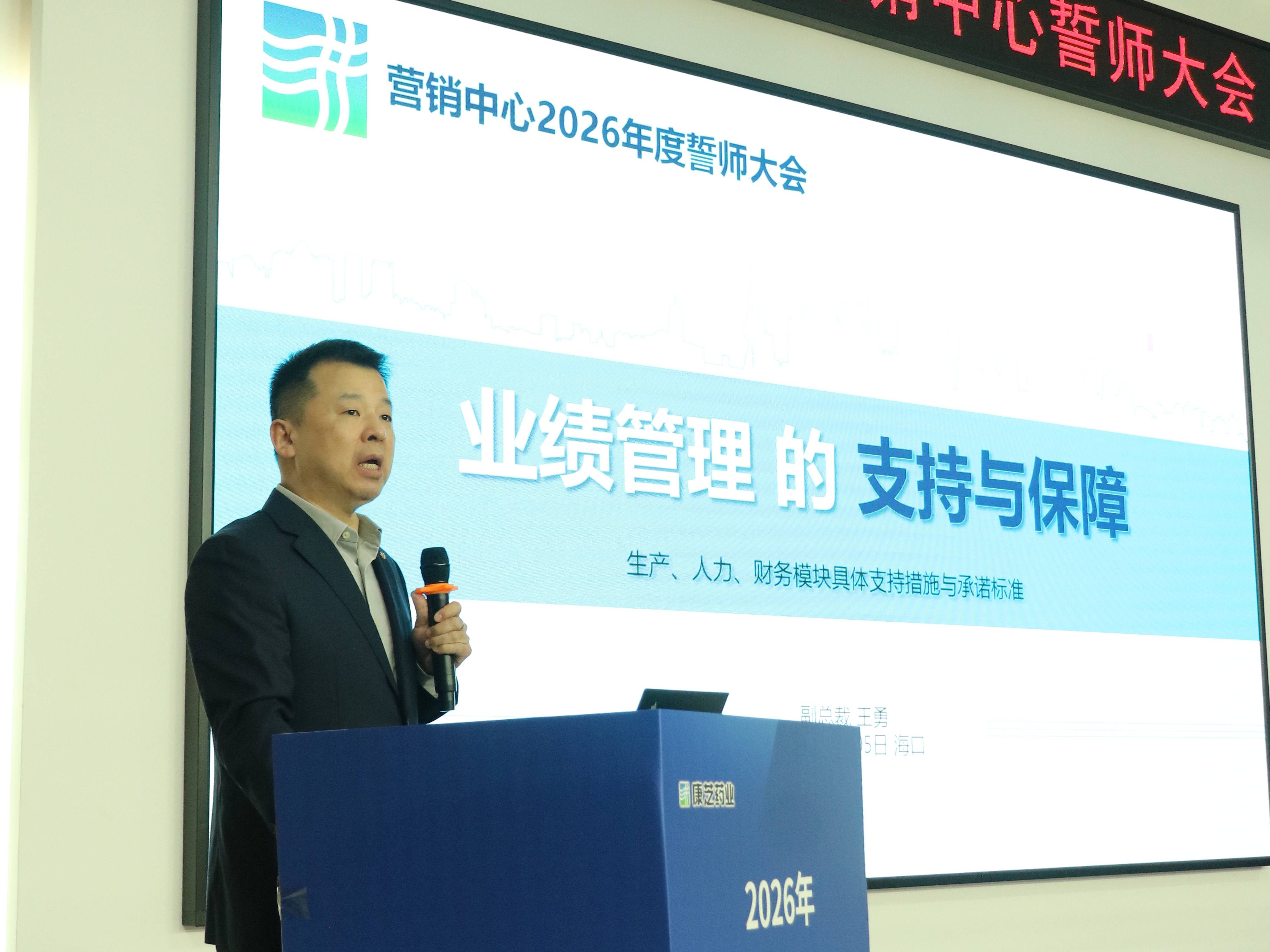 大会伊始,洪江游董事长发表致辞,为全体营销人注入强大信心。他指出,集团总部迁回海口后,康芝药业的发展备受海南各级政府关注与支持,2026年公司将举全司之力为营销战役配齐资源,各部门均以服务和保障销售为核心导向。在持续开拓“新康芝模式”的关键之年,唯有全体销售精兵团队携手思变、勇于破局,打破常规,开创康芝药业销售发展的新纪元。