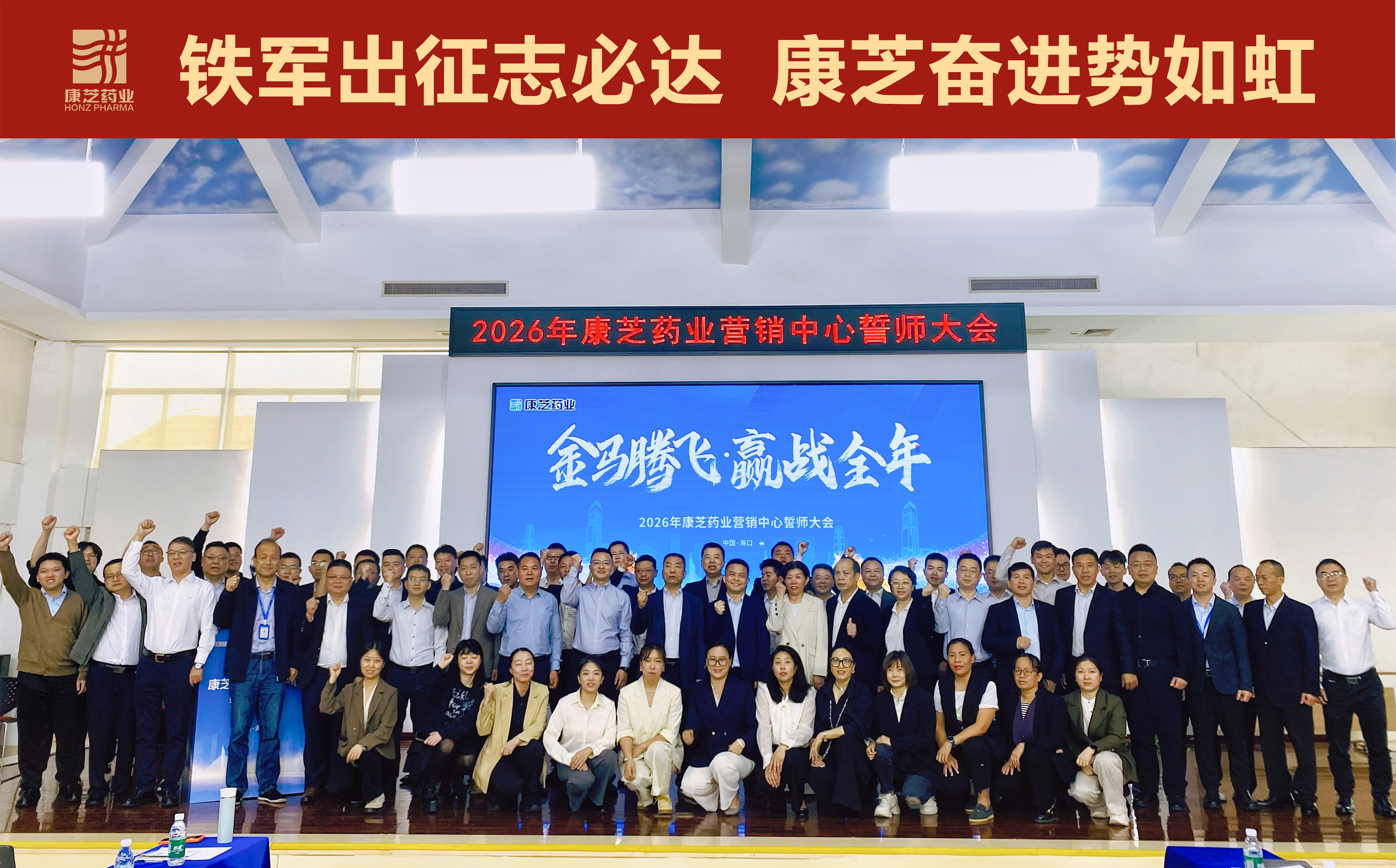 春潮涌动启新程,奋楫扬帆正当时。3月5日至7日,康芝药业2026年营销中心誓师大会在海口总部隆重召开。公司董事长洪江游、副总裁王勇、财务总监李静、海南生产基地总经理高洪常等高管,与营销中心总经理王磊、中央市场部总经理袁启航及各事业部管理团队、营销精兵强将齐聚海口总部,共立攻坚誓言,为公司营销版图开拓进阶吹响奋进号角。